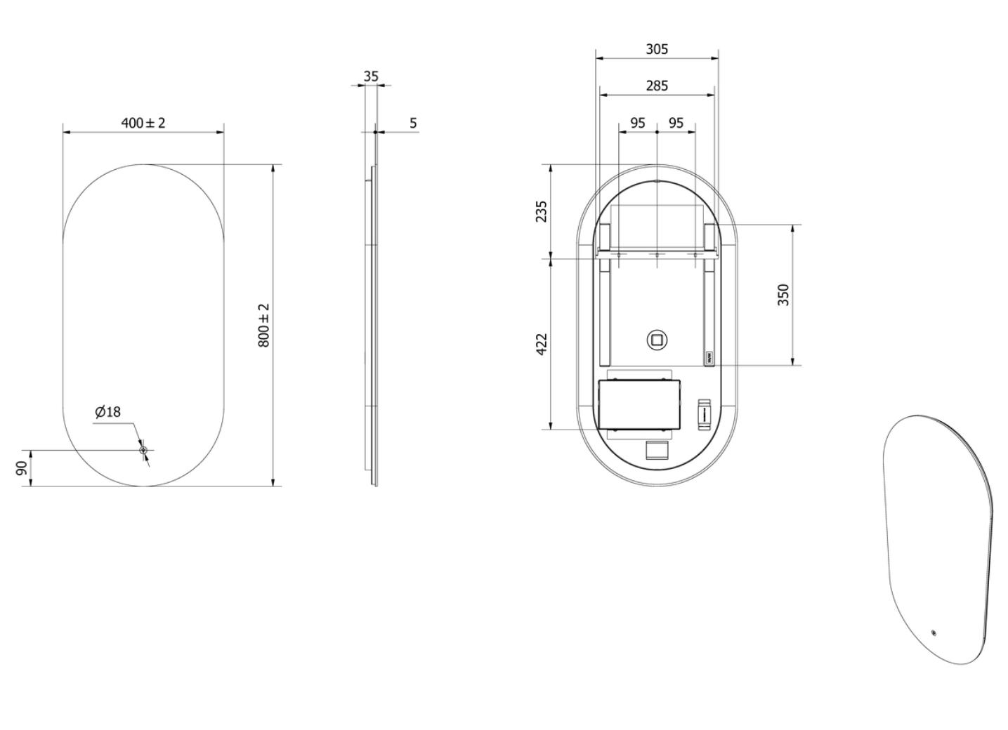 Vida speil 40x80cm led-lys– Elegant ovalt speil med en myk glorie