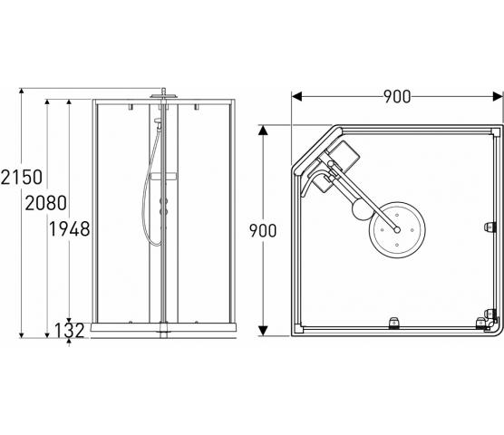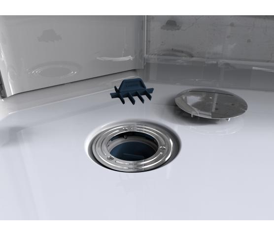 Porsgrund Showerama 10-5 Comfort dusjkabinett i firkantet modell er et komplett dusjkabinett av høy kvalitet med integrert blandebatteri, takdusj, integrert, romslig oppbevaringshylle i plexiglass, regulérbar hånddusj. Enkel montering med festekrok i topprofil og glass ferdig limt i profil. Ingen bruk av silikon. Hjul og justerbare føtter under dusjkaret. Integrert hårsil i avløpet. Stødig dusjkar i kunstmarmor. Dører som glir lett. Lav inngangshøyde, kun 128 mm.