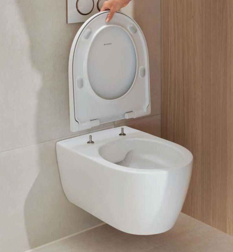 Geberit iCon skål og SC/QR sete Rimfree, skjult feste. Dypde 53 cm