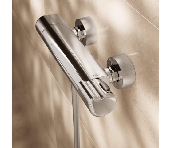 Temperaturrattet har en sperreknapp som hindrer skålding, og overflaten på dusjkranen blir ikke varm.
