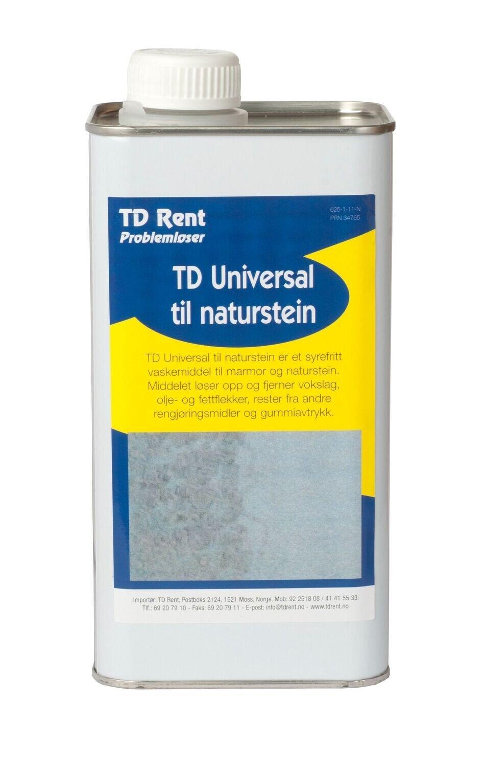 TD Universal til naturstein er et løsemiddelholdig spesialrengjøringskonsentrat, og et syrefritt vaskemiddel. Middelet har en meget god oppløsnings- og rengjøringsevne, og skiller seg ut som et svært allsidig produkt.